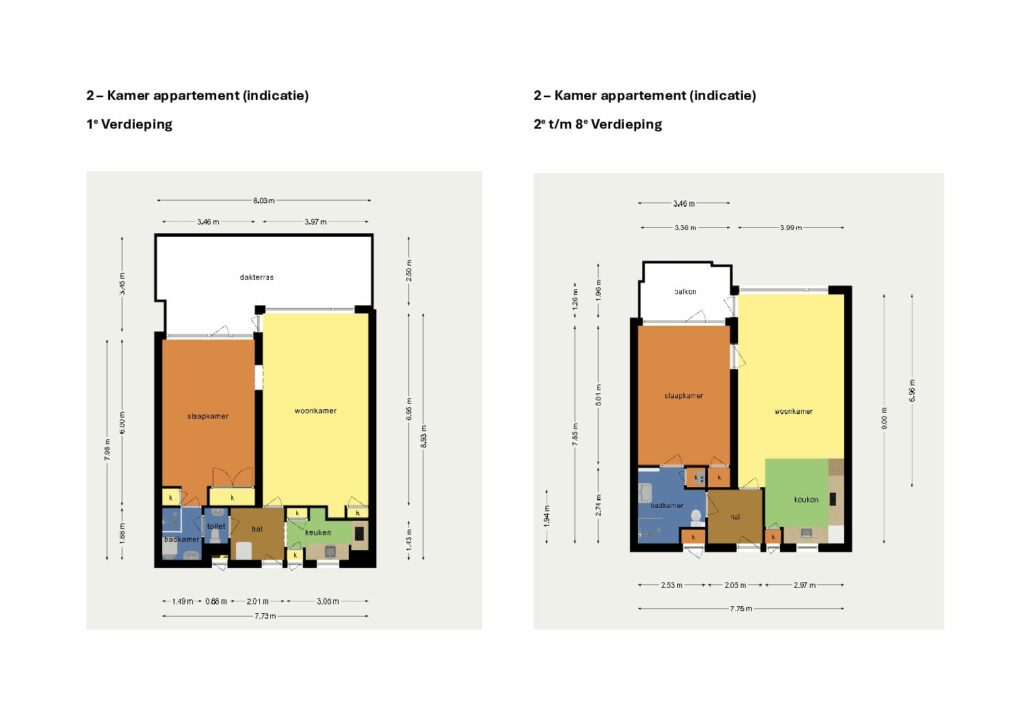 Onderstaand zijn de betreffende plattegronden ter indicatie. Er zijn geen badkuipen meer in de appartementen, zoals op sommige tekeningen staan vermeld.
